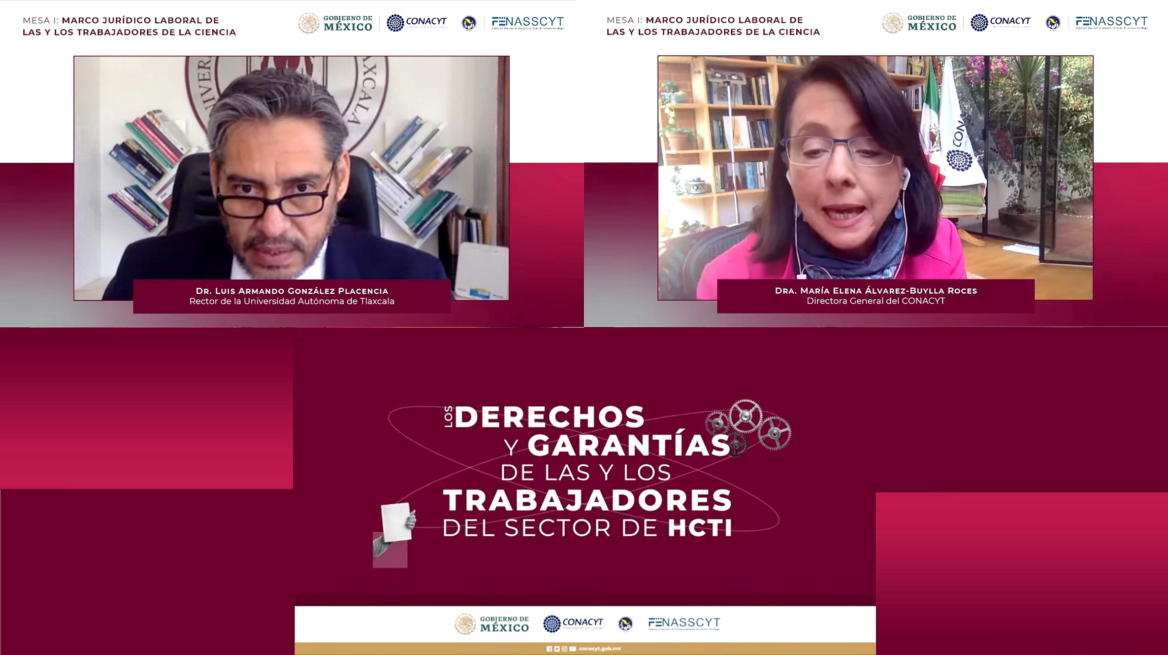 Asimismo, el Lic. Arturo Alcalde Justiniani, abogado laborista; el Presidente de la Academia Mexicana del Derecho Procesal del Trabajo, Mtro. Gilberto Chávez Orozco; y la Directora de Estrategias y Procesos Jurídicos del CONACYT, Mtra. Daniela Herrera Covarrubias; y fue moderado por la Dra. Liza Elena Aceves López, encargada de despacho de la Dirección de Vocaciones Científicas y SNI del CONACYT.
