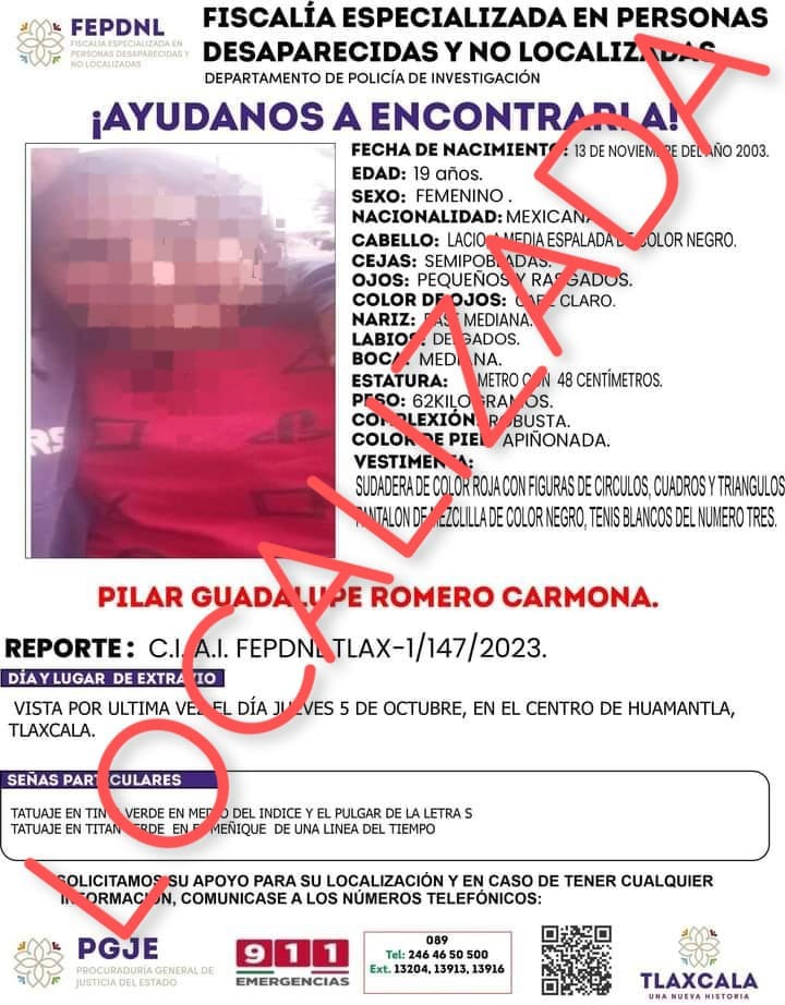Agentes de la Policía de Investigación adscritos a la Fiscalía Especializada en Personas Desaparecidas y No Localizadas (Fepdnl) de la Procuraduría General de Justicia del Estado (PGJE) localizaron a una persona del sexo femenino reportada como desaparecida.