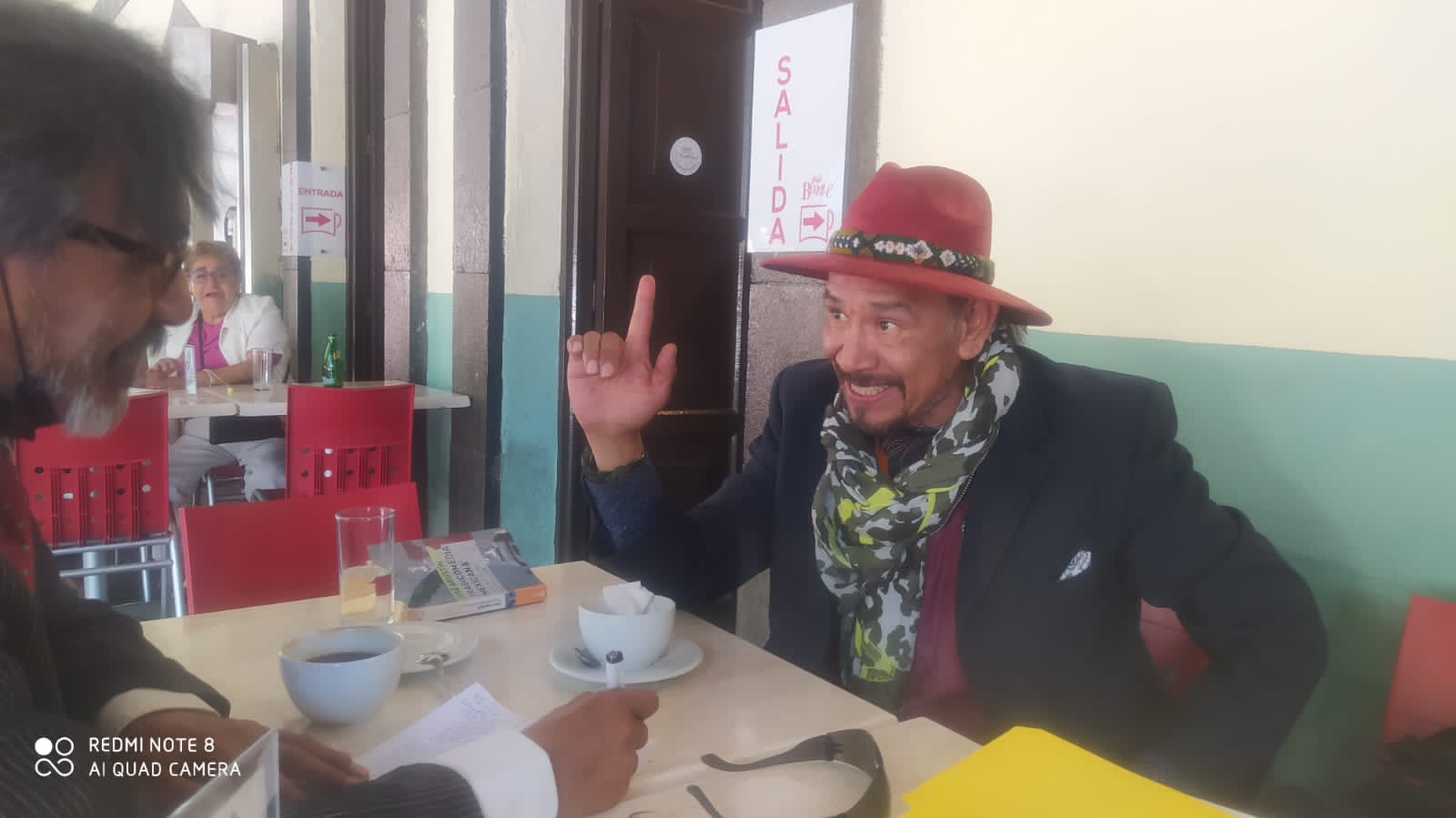 Charlamos cafeteando en el mediodía más cálido del nuevo año. Hasta nuestra mesa del Bunte del Portal Grande, pasa a saludar un colega suyo, Lino Noé Montiel, un magistrado del Tribunal Electoral de Tlaxcala (TET).