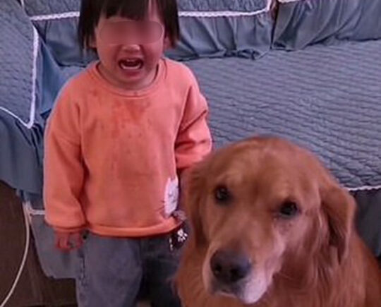 La madre furibunda comenzó a lanzar fuertes gritos a la niña, cuando, de prontó, Harry Potter, una golden retriever, se puso en medio para tratar de mediar la situación.