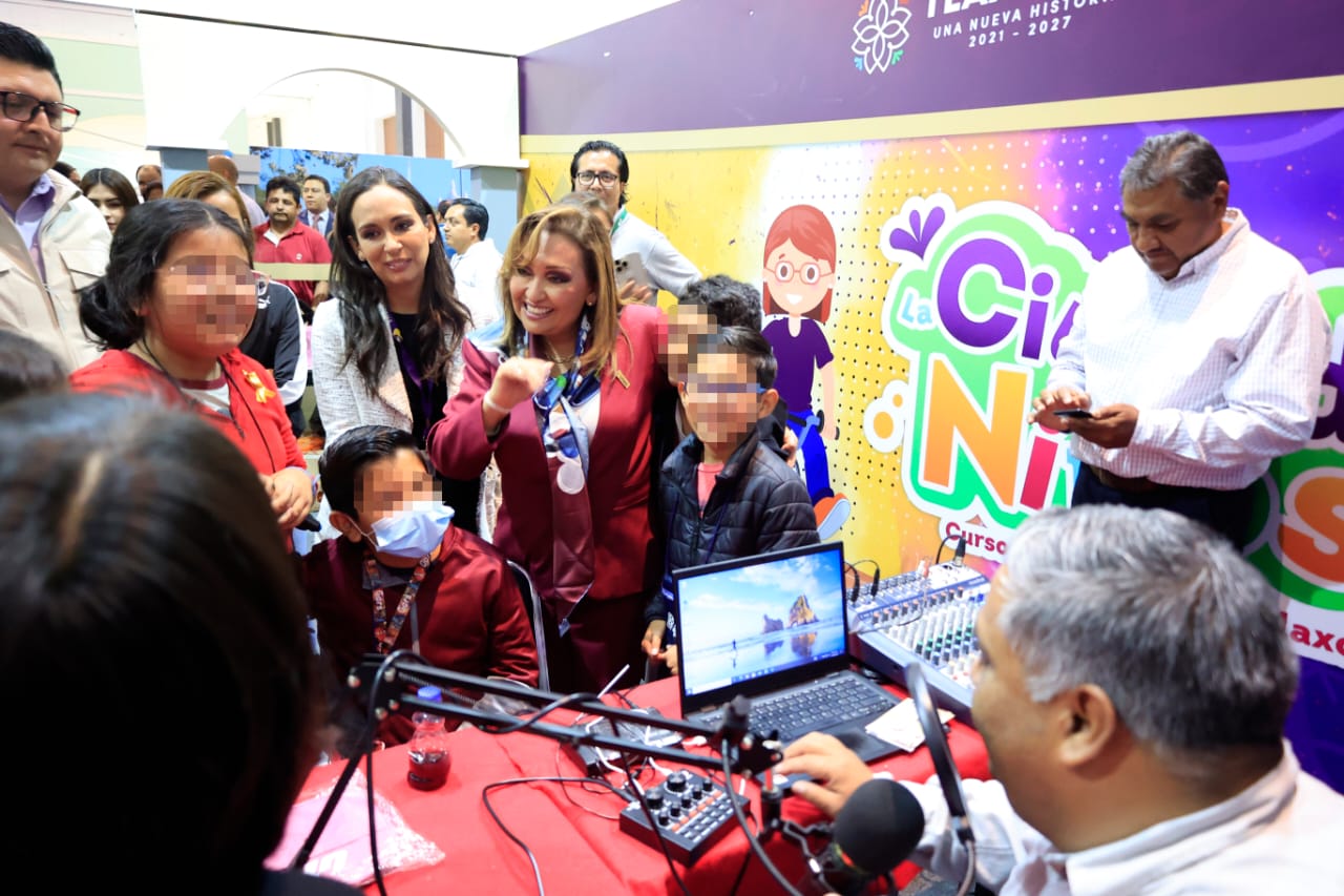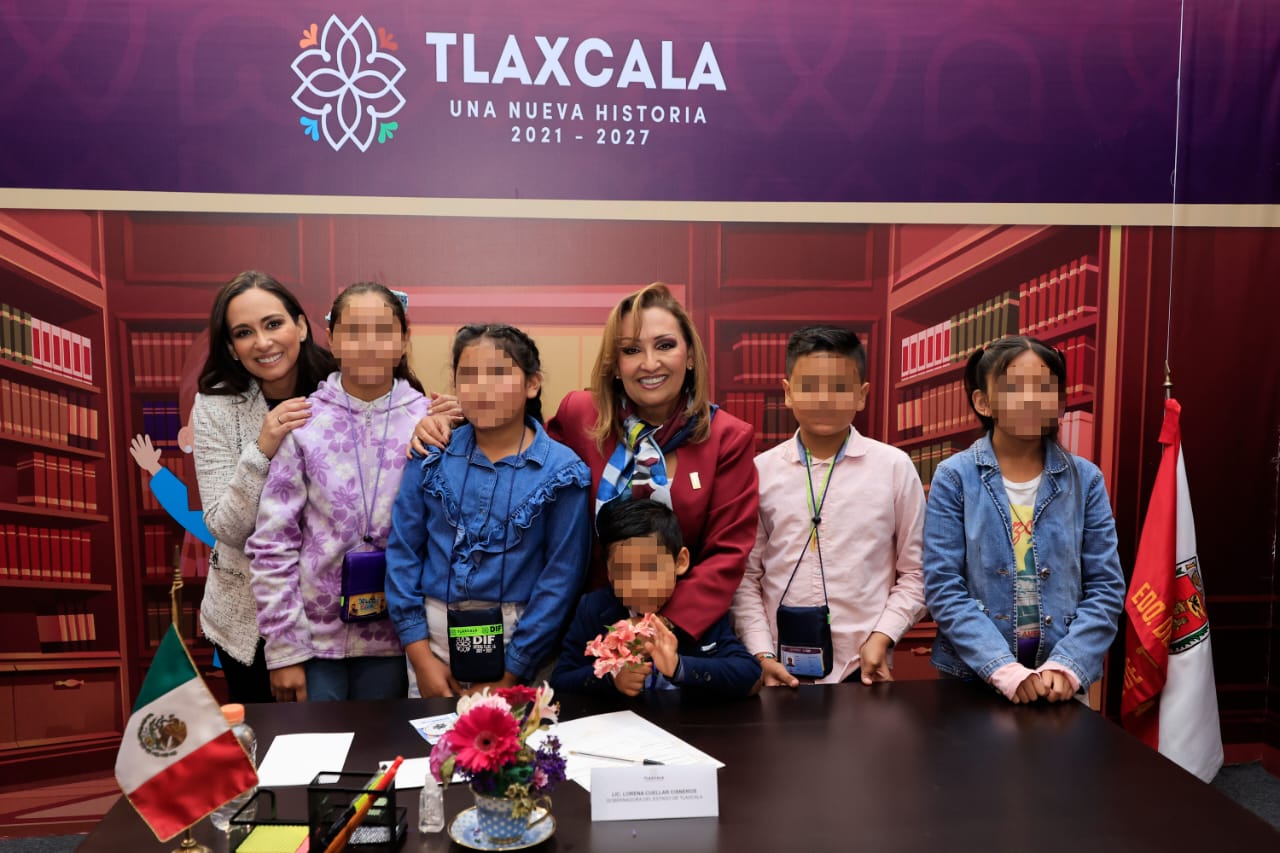 En la “Ciudad de las y los Niños” está el Despacho de la Gobernadora, donde sostuvo audiencia con las y los niños Santiago, Atziri, Bladimir, Liz y Sinaí, quienes le hicieron preguntas y peticiones como que todas y todos los niños tengan acceso a la educación en las mejores condiciones, a lo que la mandataria respondió que en el actual gobierno impulsa la construcción de aulas de preescolar, además escuelas nuevas y cinco nuevas universidades.