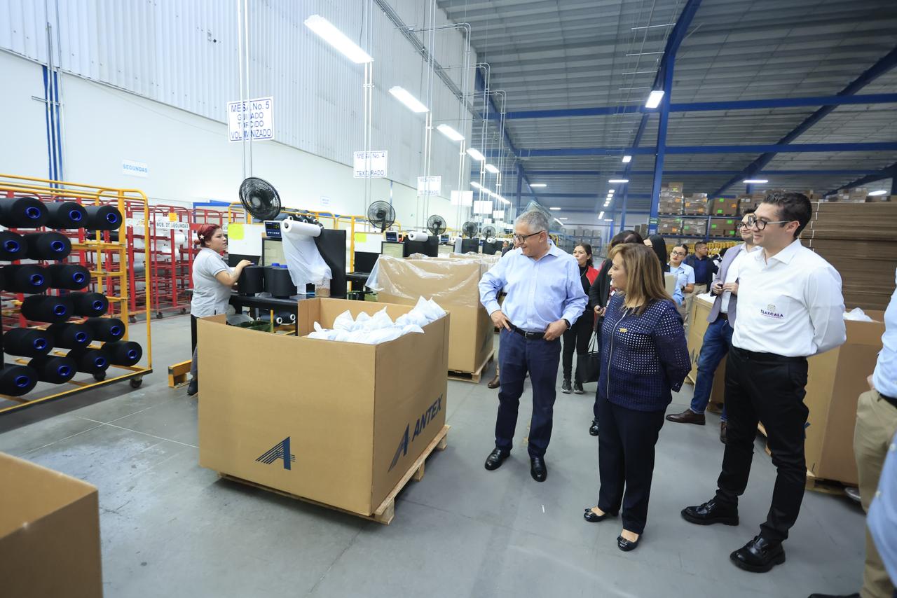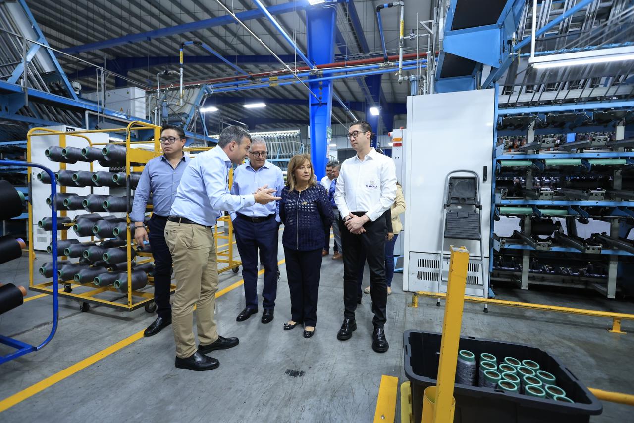 La gobernadora Lorena Cuéllar Cisneros visitó las instalaciones de la empresa española AntexTextil, ubicada en Ciudad Industrial Xicohténcatl (CIX) III, en el municipio de Tlaxco, dedicada a la fabricación de hilos sintéticos para la industria automotriz y textil.