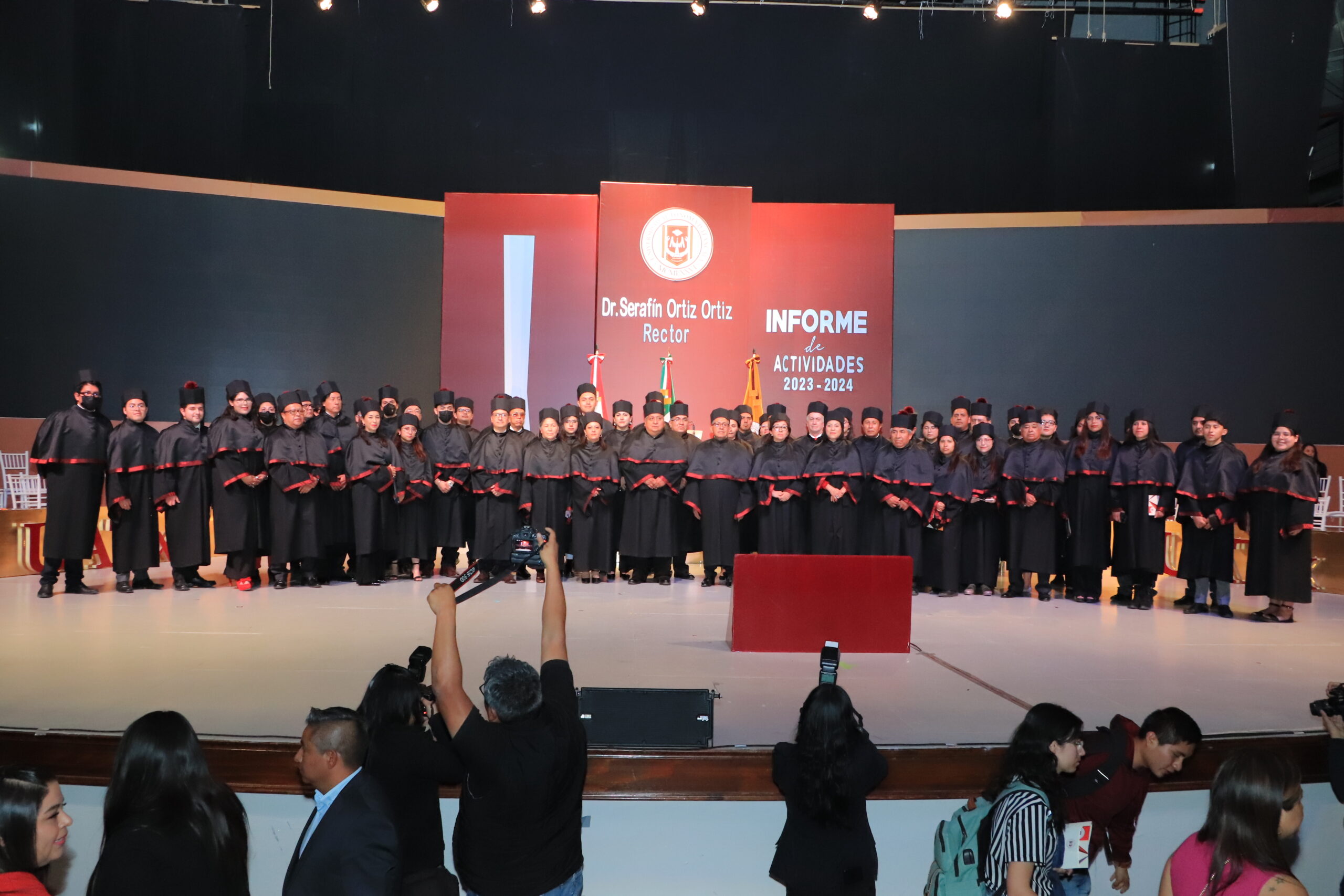 Dentro de su alocución, el Doctor Serafín Ortiz también puntualizó los avances alcanzados en el periodo que se informa relativo a la investigación, la extensión universitaria y la difusión cultural, así como el monto total de ingresos obtenidos durante el lapso 2023-2024.
