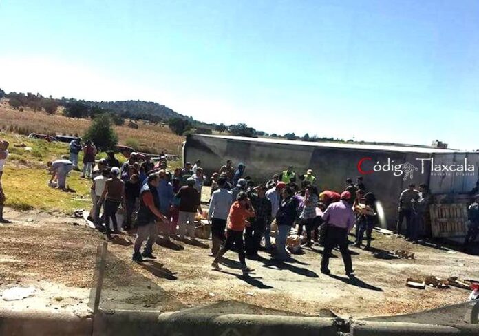 Según un reporte extraoficial, alrededor de las 7 de la mañana de este jueves, un tráiler que transportaba leche sufrió una volcadura a la altura del kilómetro 10 de la carretera Apizaco-Huamantla, a razón de que el peso de la unidad rebasó al conductor en la curva.